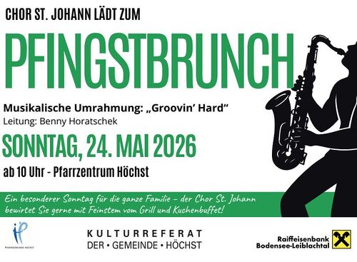 24.05.2026, 10:00 Uhr, Höchst, Pfarrzentrum Höchst Pfingstbrunch vom Chor St. Johann. Musikalische Umrahmung: "Groovin´ Hard" Mehr lesen... Mehr lesen