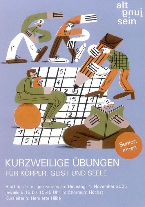 11.11.2025, 09:15 Uhr ALT JUNG SEIN Kurs, Übungen für Körper, Geist und Seele Pfarrzentrum Höchst Kirchplatz 10 6973 Höchst Mehr lesen
