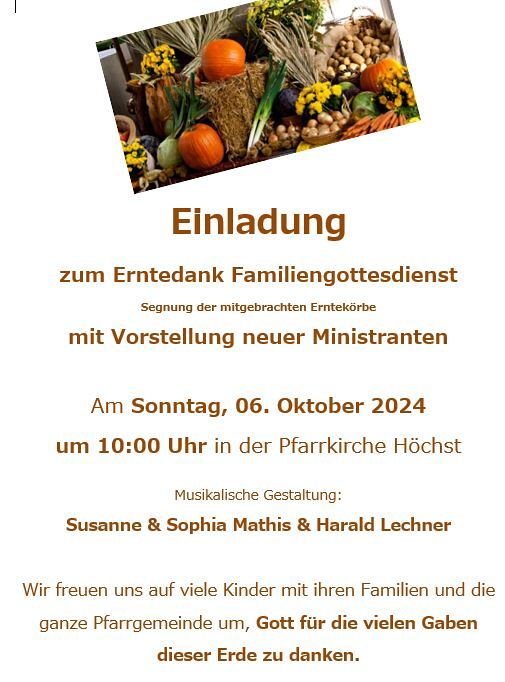 Eucharistiefeier - Erntedank Familiengottesdienst mit Jahresgedächtnis und Vorstellung der neuen Ministranten; Musik: Sophia und Susanne Mathis, Harald Lechner