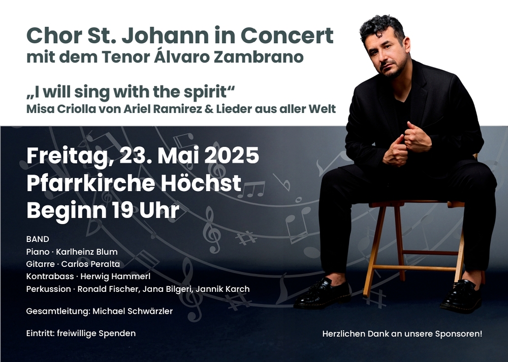 Chor St. Johann in Concert mit dem Tenor Alvaro Zambrano. "I will sing with the spirit"